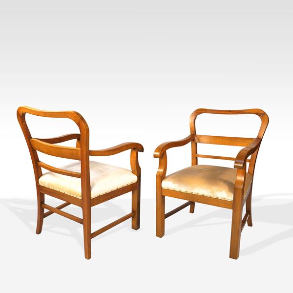 armchair 88x60x52 - chair 84x46x42 cm.two armchairs and four Rationalist style chairs in wood and upholstered fabric