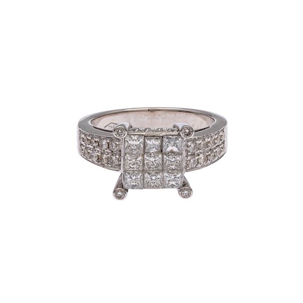 weight 7 g.princess and brilliant cut, circa 1.40 ct, size 7.5