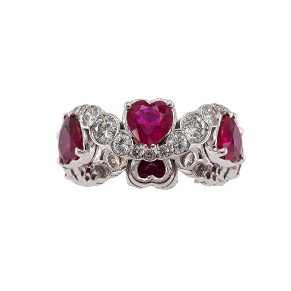 weight 4 g.Burmese rubies circa 3.70 ct and brilliant cut diamonds circa 1.80 ct, F/G color - VVS/P clarity, size 10.5, complete with gemological certificate