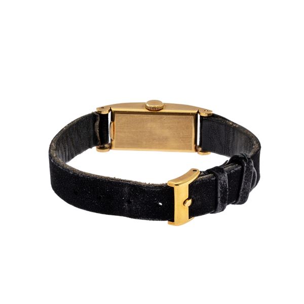 in 18kt yellow gold, ref. 2292 - 690.281, tegolino case 25x13 mm. curved glass, dial with golden indexes, mechanical movement with manual winding n. 843.76, caliber 8.80, complete with strap with original 18kt yellow gold buckle and Patek Philippe archive extract, signed case, dial and movement