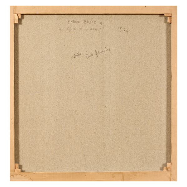 70x70 cm."Il ghiotto generali", 1974, oil on canvas, signed and dated top left, signed, titled and dated on the back, within frame