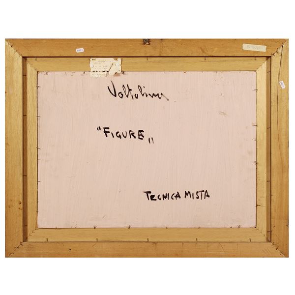 50x70 cm."Figure", mixed media on panel, signed lower right and on the back, within a frame