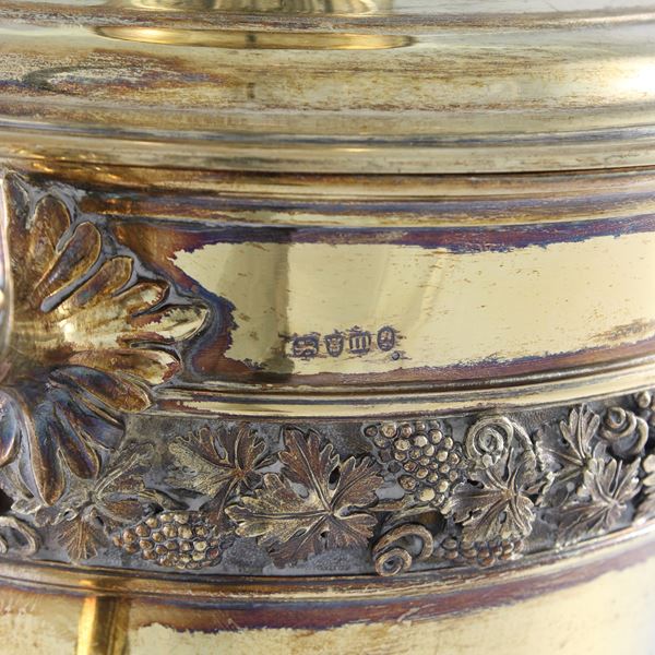 h. 44 cm.chiselled body with vine shoots, handles shaped like vegetal scrolls, weight 2,895 gr.