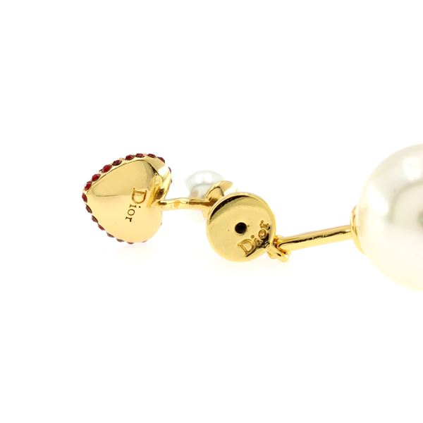 lunghezza 3,3 cm.cuori in metallo dorato pietre rosse con logo e perle