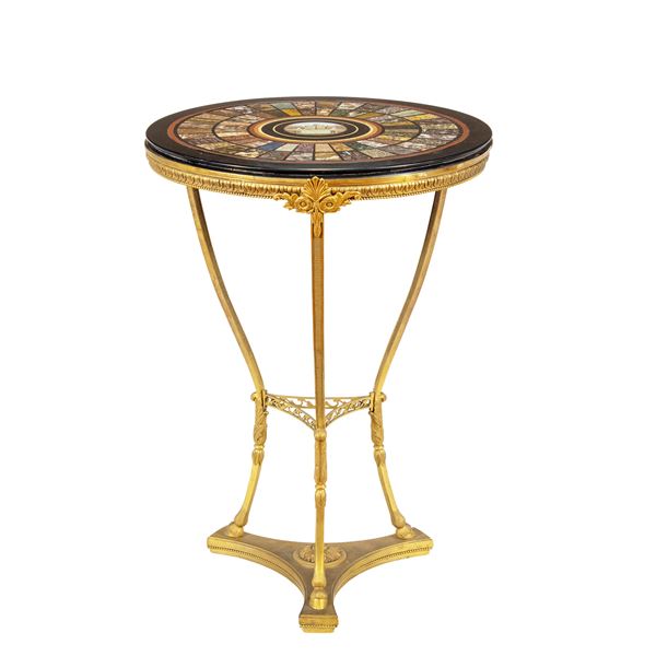 77x53.5 cm.depicting "St. Peter's Square", resting on a gilt bronze tripod base chiseled with vegetal motifs, defects