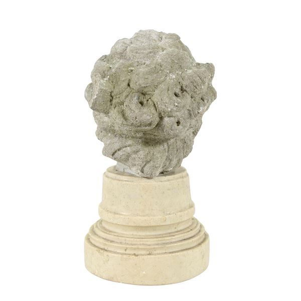 h. 36 cm.depicting a cherub's head, resting on a yellow marble circular base of different manufacture