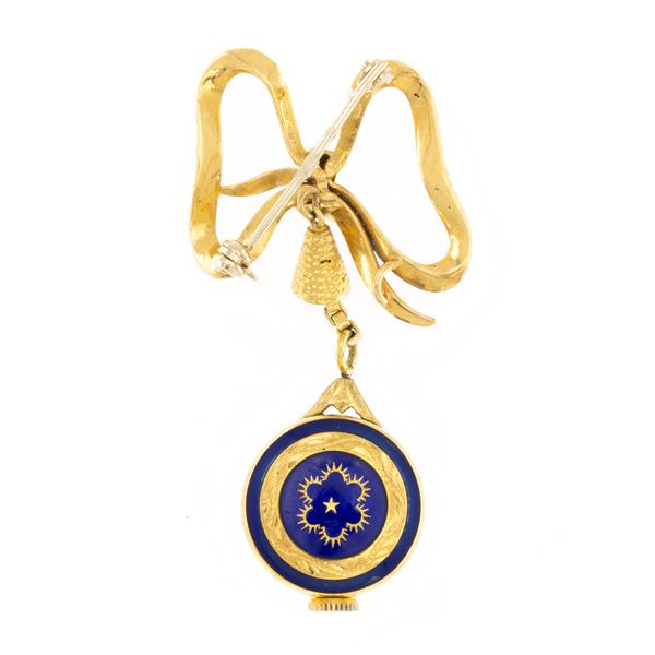 weight 13 gr.decorated with blue enamel, Veroni watch, 18 mm round case. silvered dial with Arabic numerals, mechanical movement with manual winding, length 6.5 cm.