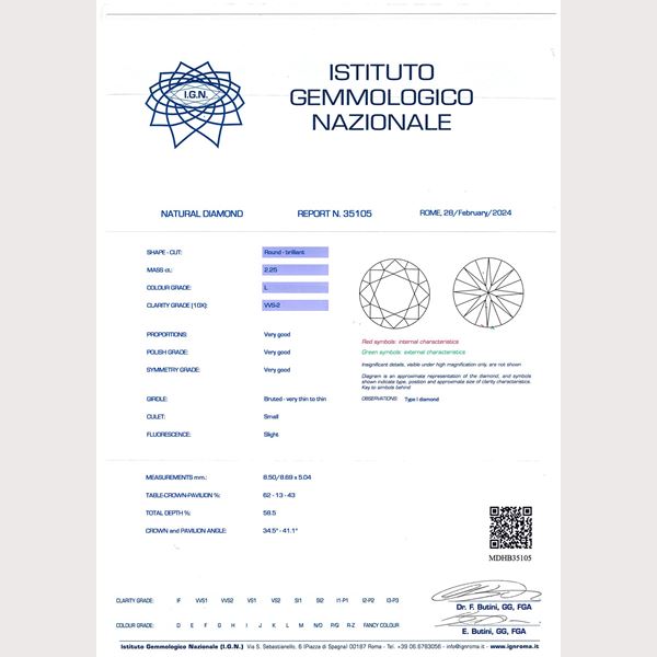 weight 5 gr.brilliant cut circa 4.50 ct, L color - VVS2 clarity, complete with gemological certificate