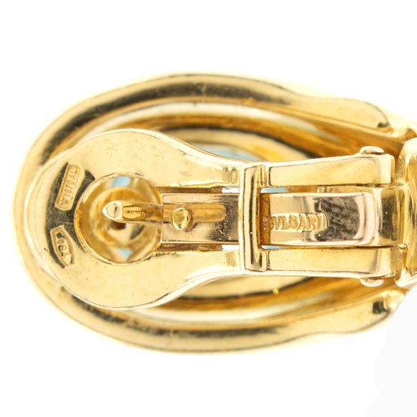 weight 20 gr.in 18kt yellow gold with cabochon cut aquamarines, length 2 cm.