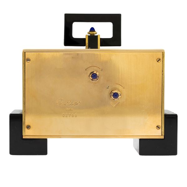 dimensions 9x10.5x3 cm.in brass, metal and enamel, ref. 298759, no. 02766, silvered dial with Arabic numerals, quartz movement