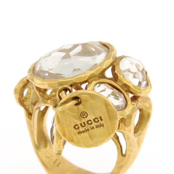 weight 12 g.in 18kt yellow gold and rock crystal, size 10