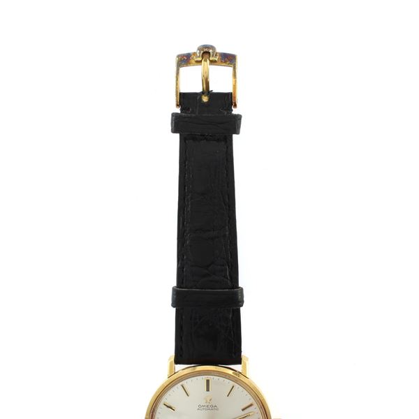 weight 42 gr.in 18kt yellow gold, ref. 165033 - 33515697, 34 mm round case. silvered dial with indexes, flawless glass, mechanical movement with automatic winding, caliber 552, strap with original plated buckle, signed case, dial and movement