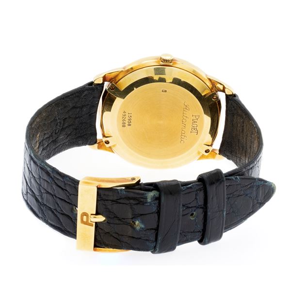in 18kt yellow gold, ref. 15958 - 492688, 33 mm round case. white dial with golden indexes, four subsidiary dials for day of the week, months, date and moon phase, sapphire crystal, mechanical movement with automatic winding, caliber 8532, strap with original 18kt yellow gold buckle, signed case, dial and movement