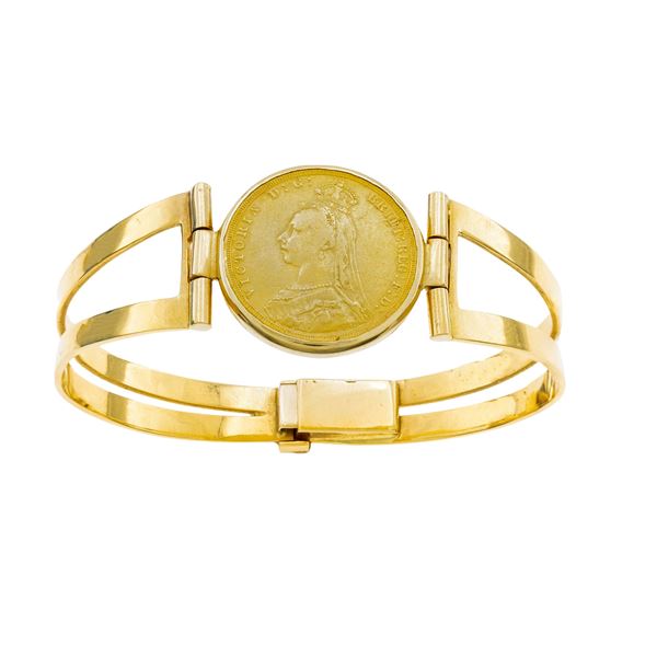 weight 36 gr.in 18kt yellow gold, 22kt gold sterling, hidden closure, diameter 6 cm.