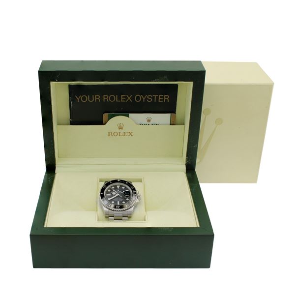 in steel ref. 116610LN, 40 mm case. black dial with indexes, unidirectional ceramic bezel, sapphire crystal, mechanical movement with automatic winding, caliber 3135, steel oyster bracelet with folding clasp, signed case, dial and movement, complete with box, guarantee and one additional link