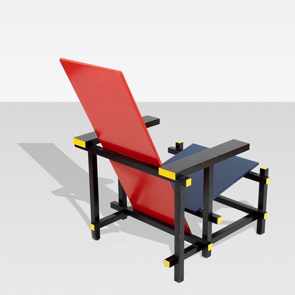 88x65x80 cm.635 Red and Blue mod. armchair in lacquered wood, production mark, slight wears