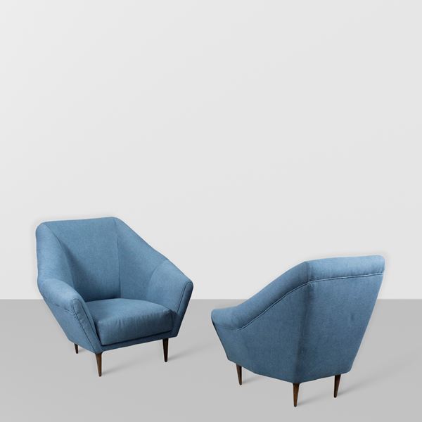 84x86x90 cm.Pair of wood and padded fabric armchairs