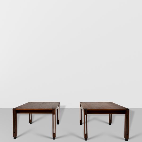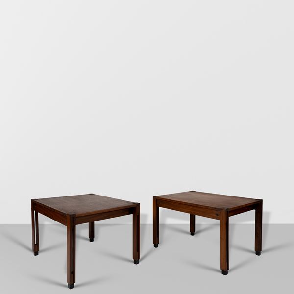 40x60x50 cm.Pair of Arona series coffee tables in wood and metal, production label, slight wears