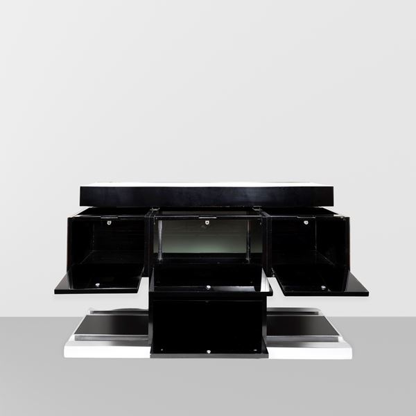 chromed metal and lacquered wood bar cabinet, slight wears