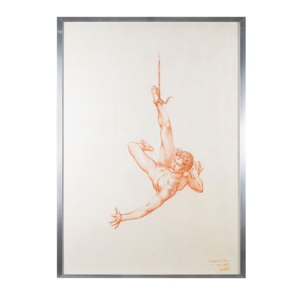 "Omaggio a Praga", 1969, sanguine on paper, signed, dated and titled lower right, within frame