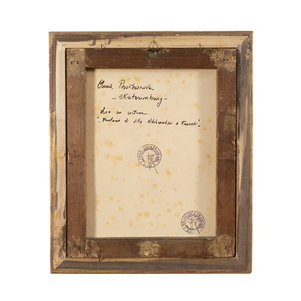 "Fountain of Villa Aldobrandini in Frascati", oil on canvas, signed lower left, within a frame