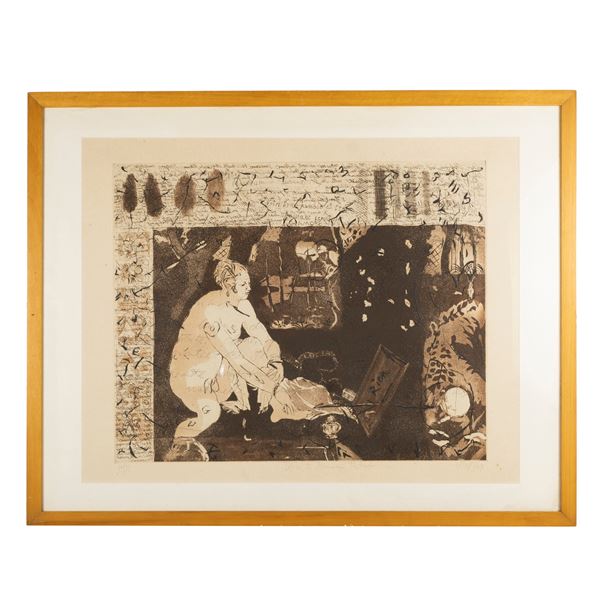 45x58 cm."Omaggio a Tintoretto", 1974, lithograph, ex. 10/99, signed lower right and titled in the center, within a frame