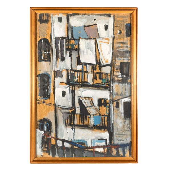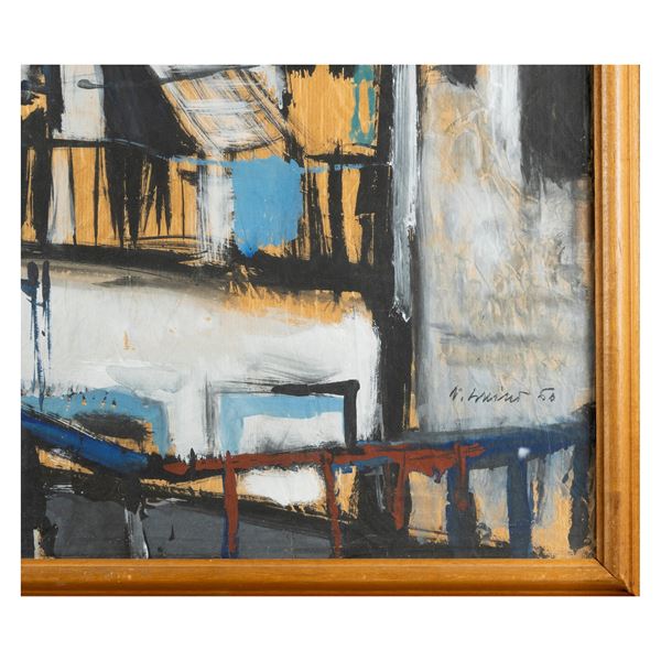 "Windows", 1960, tempera on paper, signed and dated lower right, within a frame