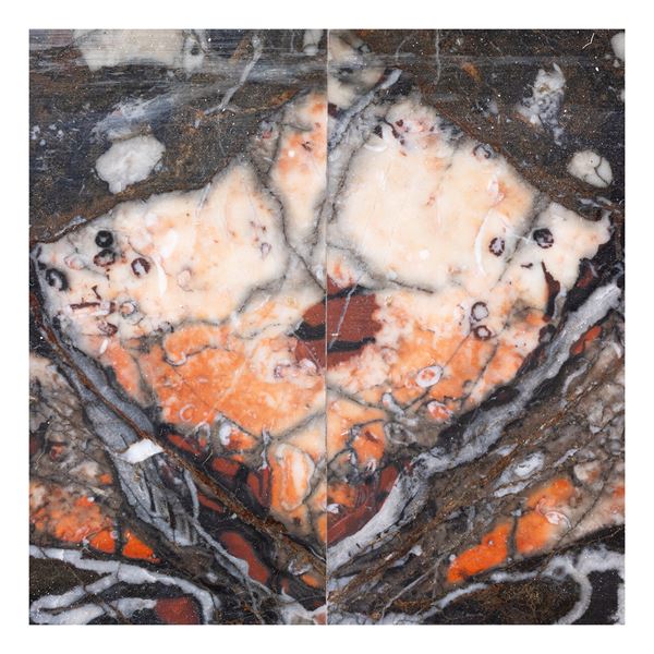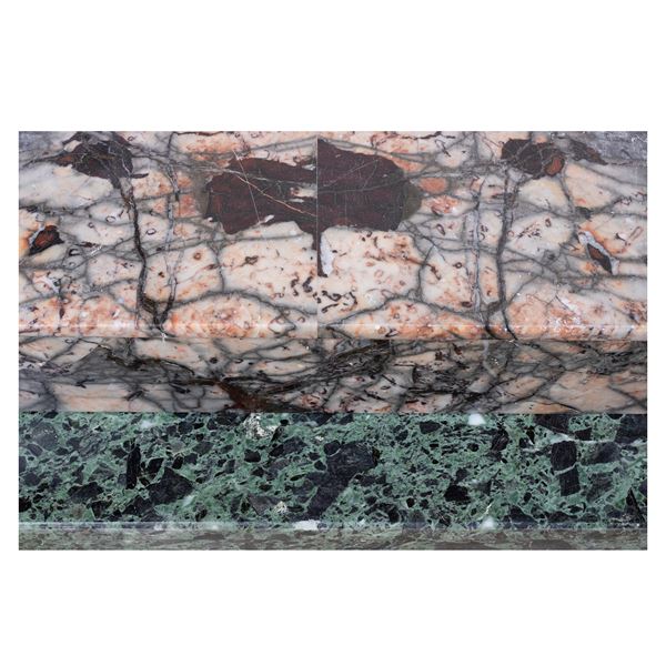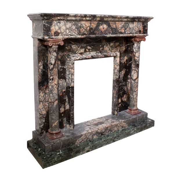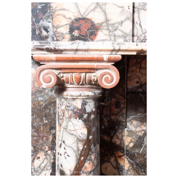 125x137x37 cm.architectural structure with front marked by two columns with a circular section with capitals and bases in ancient red marble, resting on rectangular base in ancient green marble