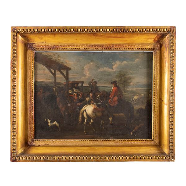 48x65 cm."La sosta dei cavalli",  oil on canvas, within frame
