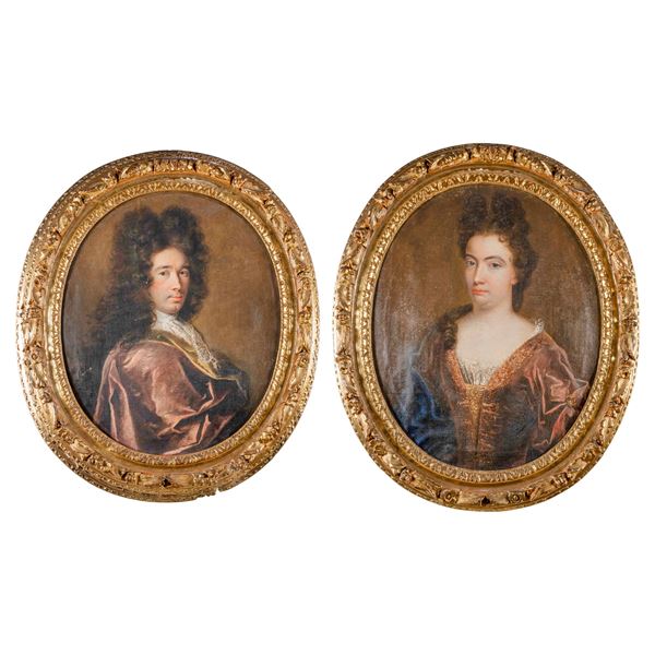 68x56 cm."Pair of portraits depicting French nobles", pair of oval oils on canvas, within frames