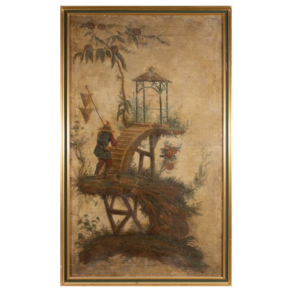 137x81 cm."Eastern figure with landscape", oil on canvas, within frame