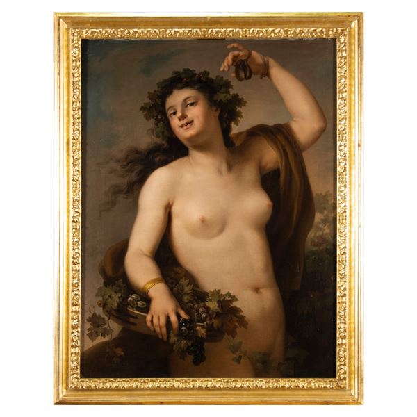 99x75 cm."Bacchante with grapes of grapes", oil on canvas, within frame