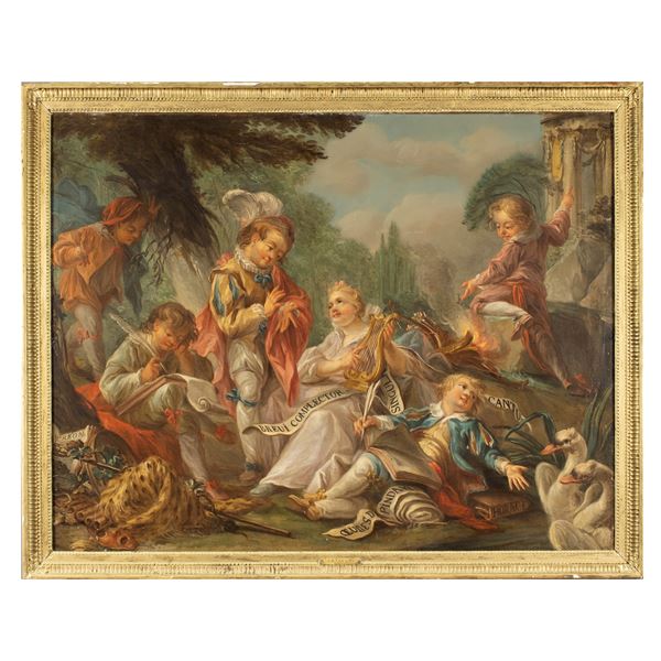 "Allegory of poetic and musical arts", oil on canvas, within frame