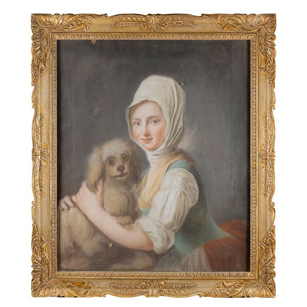 73x61 cm."Young peasant with little dog", pastel on canvas, within frame
