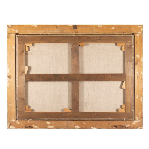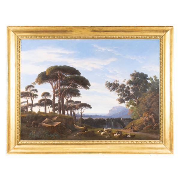 99x137 cm."View of the Roman countryside with figures", oil on canvas, within frame