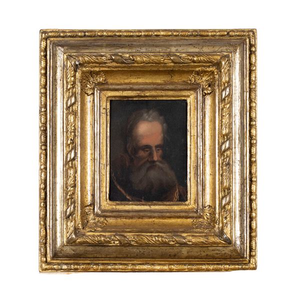 13.8x10.5 cm."Portrait of an elderly man with beard", oil on panel, within frame