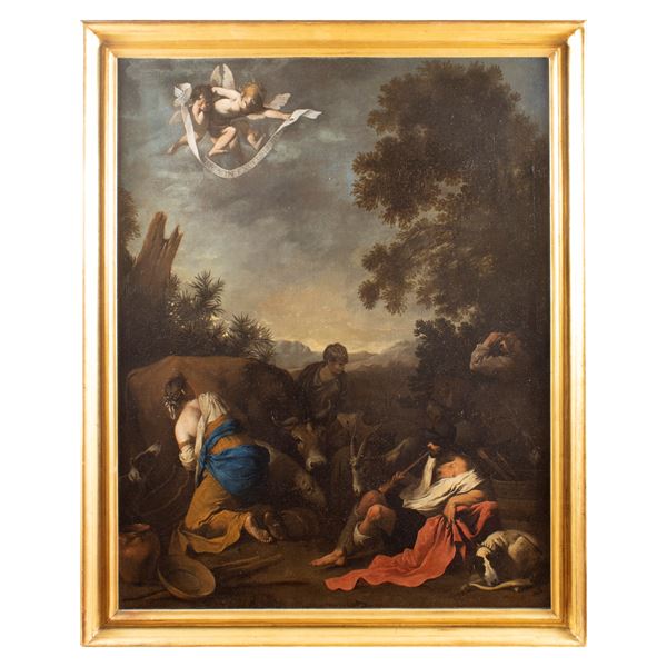 99x77 cm."Announce the shepherds", oil on canvas, within frame