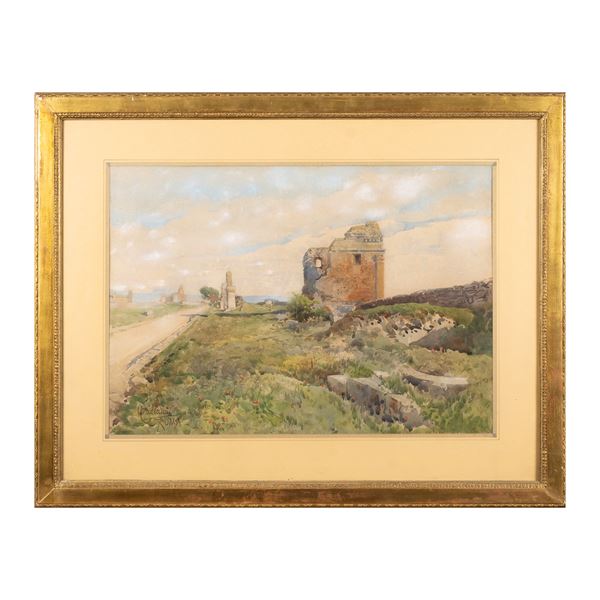 "Via Appia Antica, Rome", watercolor on paper, signed lower left, within frame
