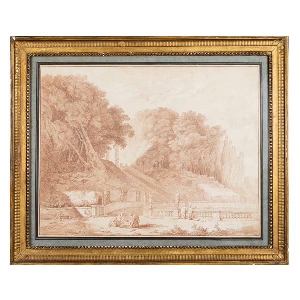 42x52 cm."The gardens of the Villa Aldobrandini in Frascati", sanguine on paper, within frame