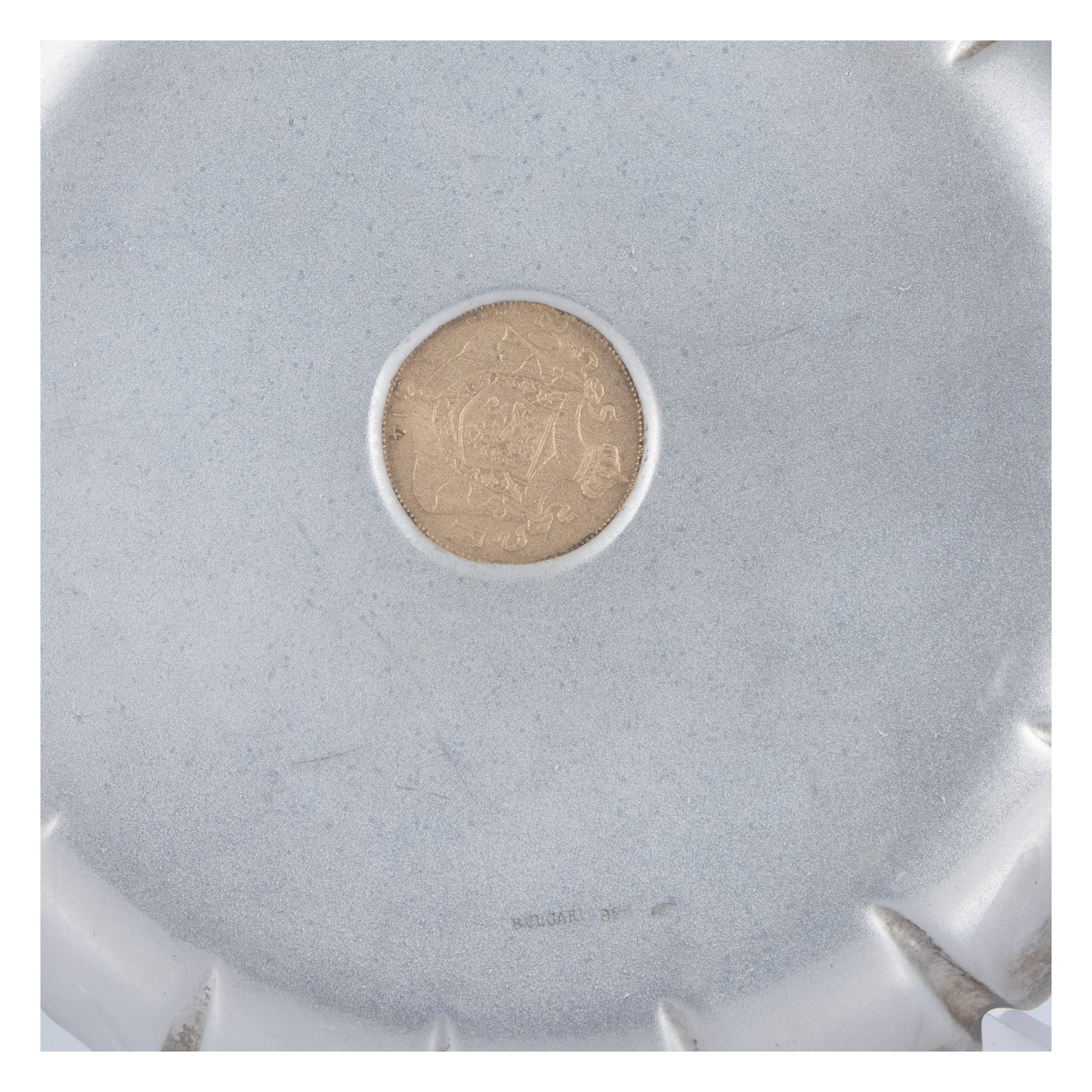 1,5x11.5 cm.circular shape in silver, a 20 Belgian francs of 1914 in yellow gold with a portrait of King Alberto I, signed, weight 126 gr