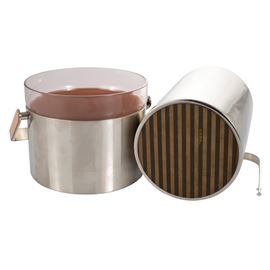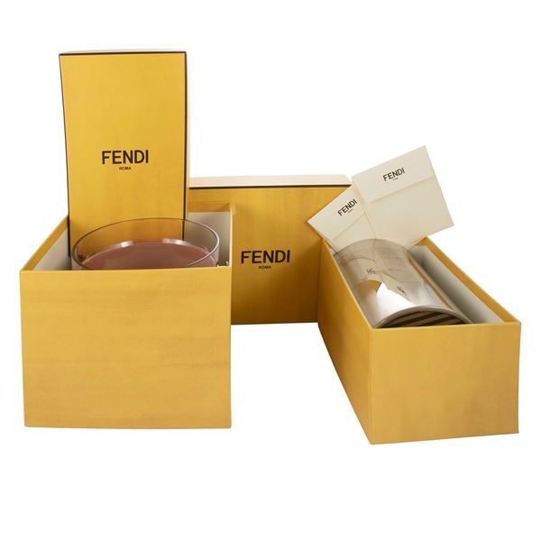 18x12 cm. - 18x15 cm.in metal, lacquered metal, glass and leather, complete with a pliers, production mark, within original boxes