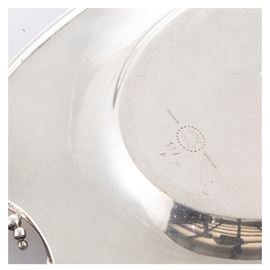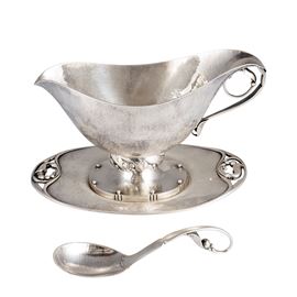 12.5x20x12.5 cm.plain body, oval base with volute handle, complete with strainer, signed, gross weight 652 gr