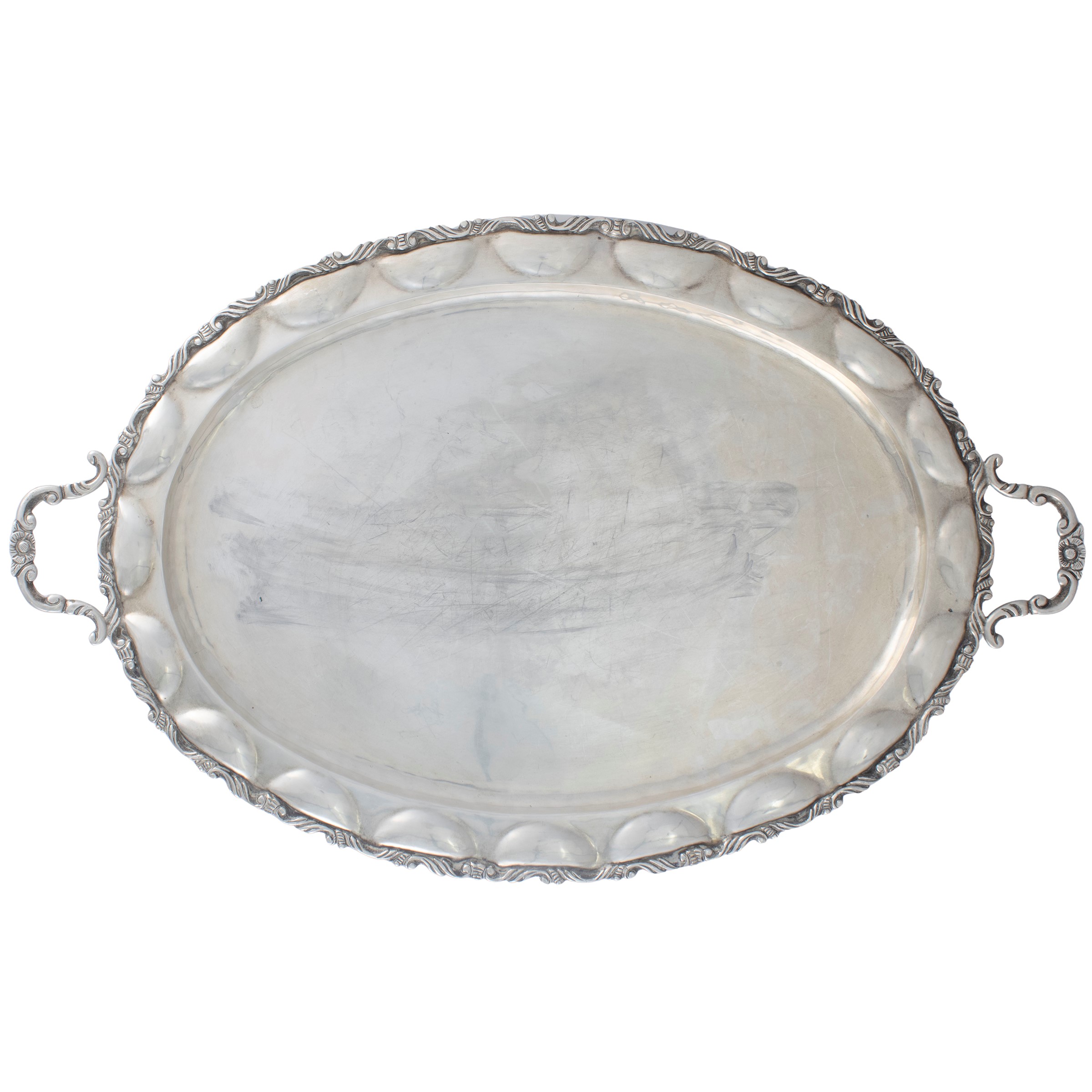 4.5x78x50 cm.oval shape with profile chiseled with vegetal motifs resting on four feet, weight 3695 gr