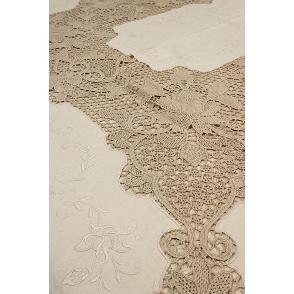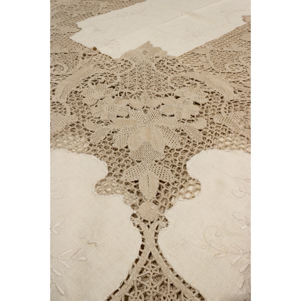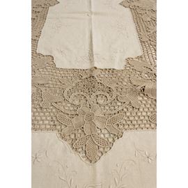 Linen tablecloth embroidered with lace