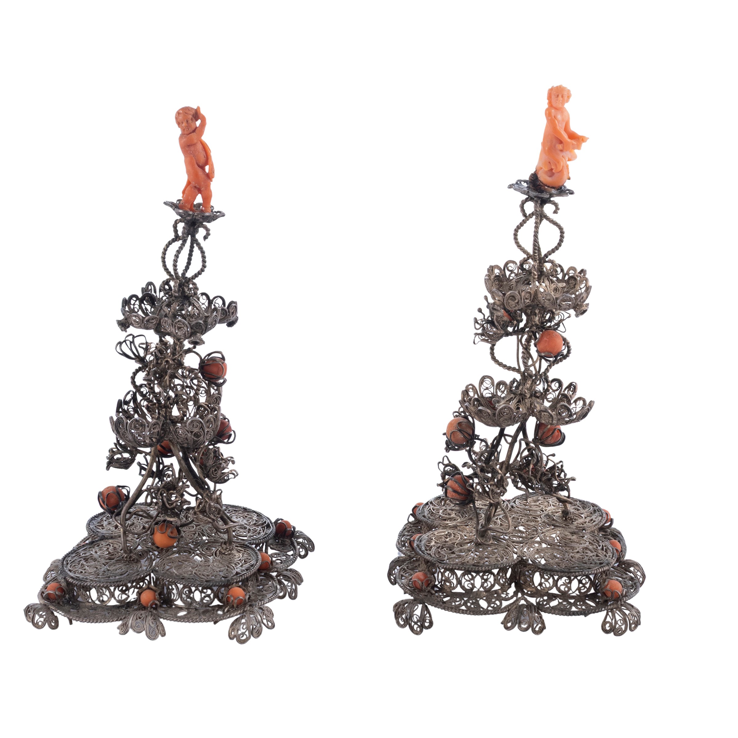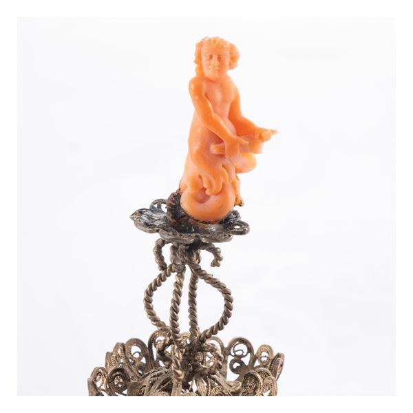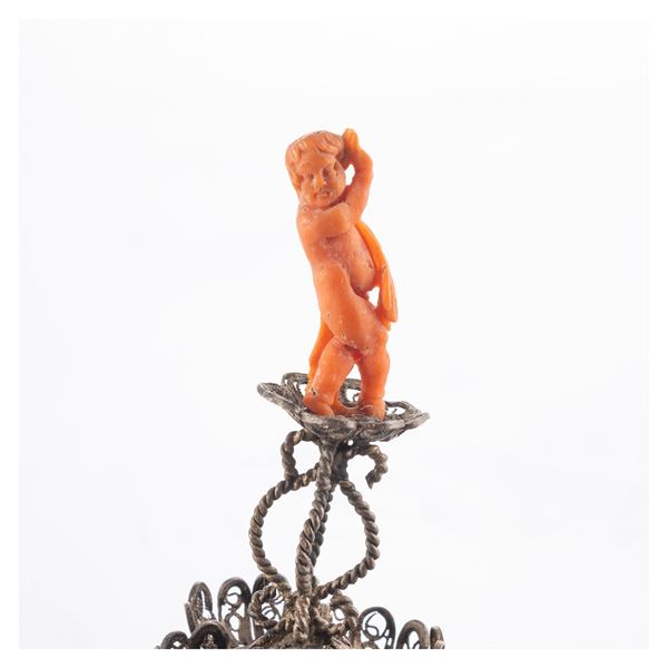 shaped bases, upper part with two sculptures carved in coral depicting cupids, wear, gross weight 286 gr