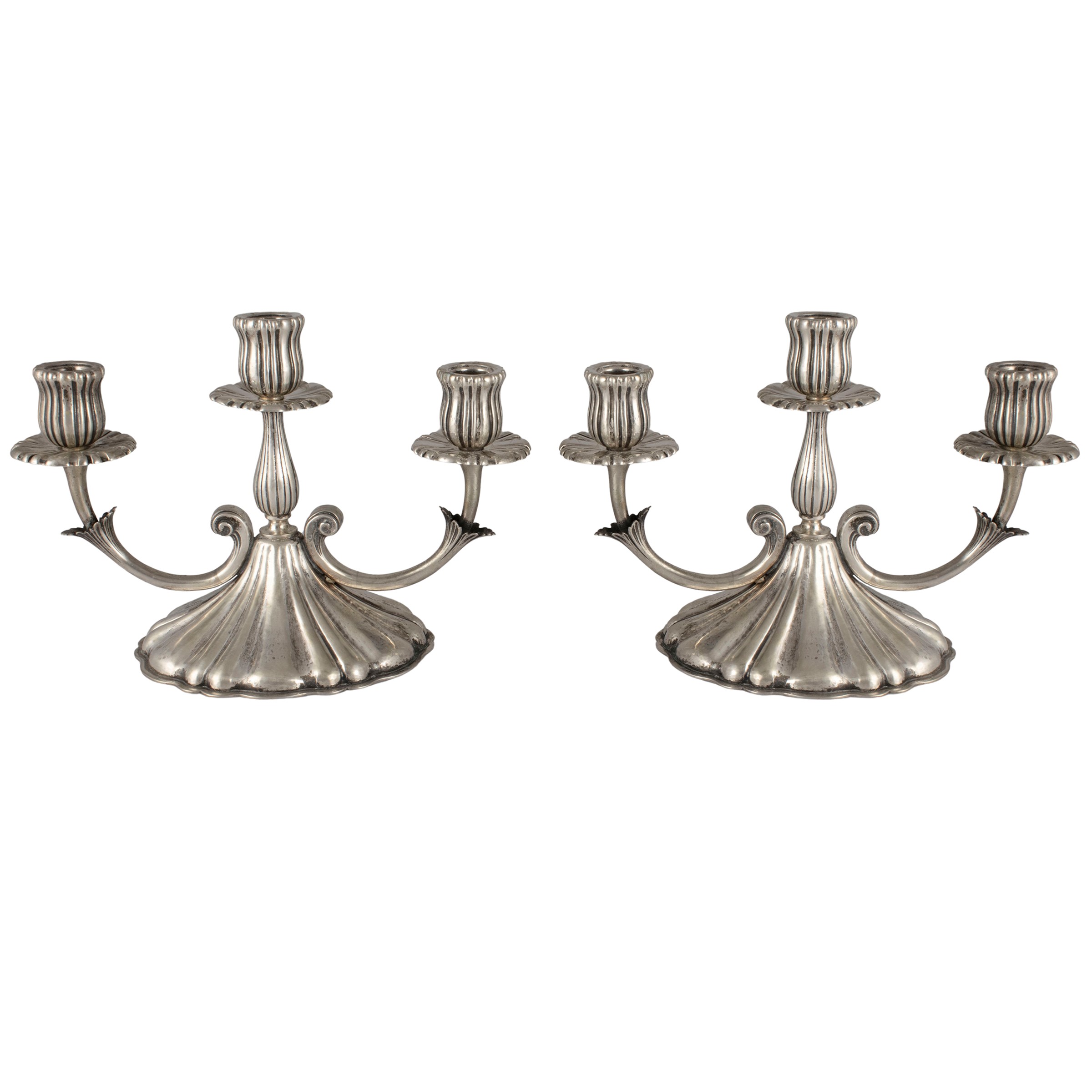 20x29x15 cm.shaped bodies, arms with volute terminals, resting on oval bases, gross weight 1549 gr