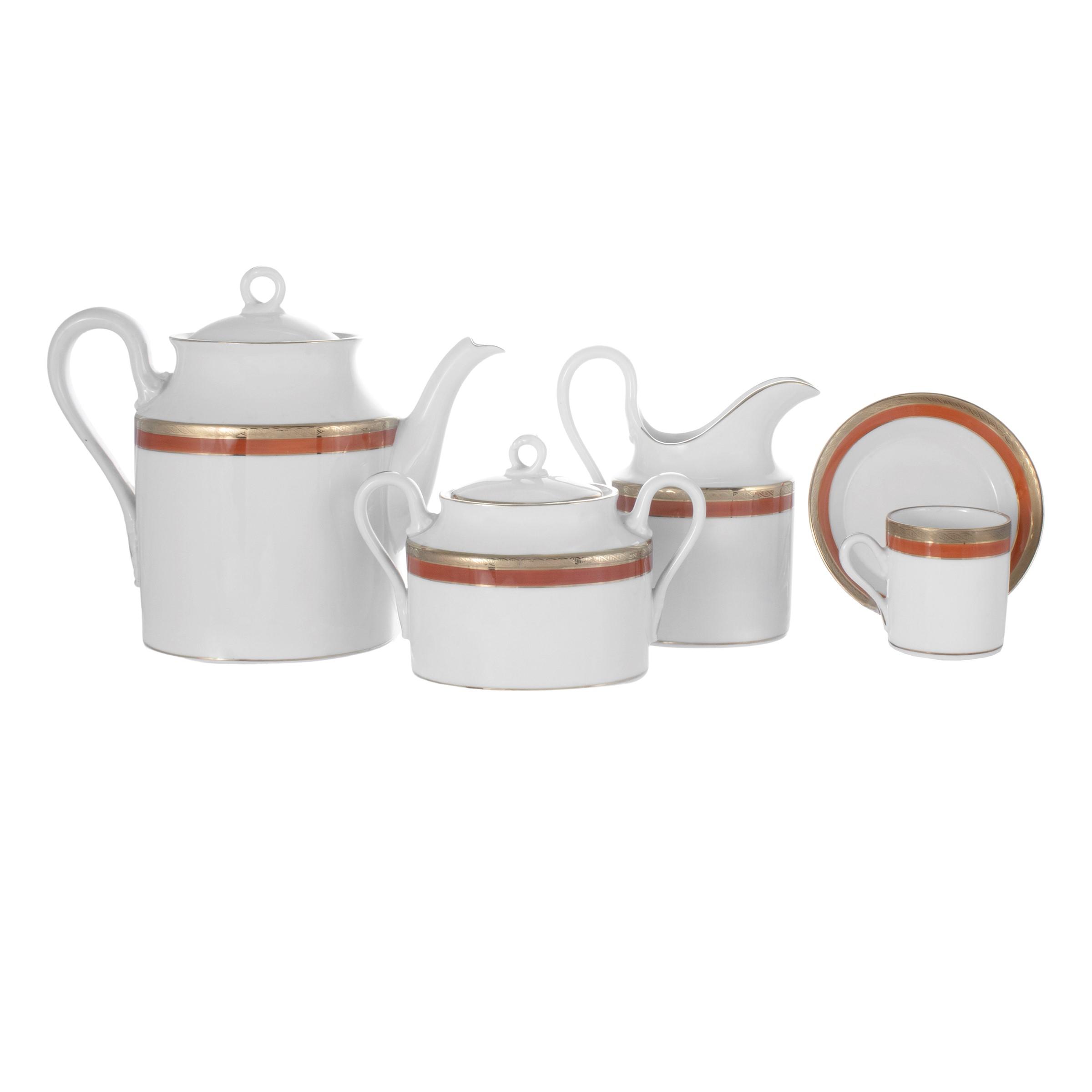 "Palermo rosso" decoration in white porcelain decorated in red and gold, production mark
