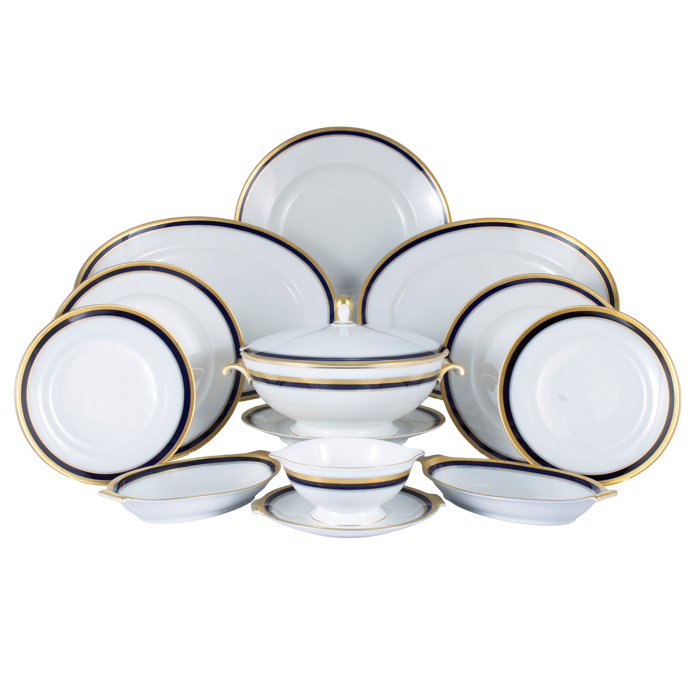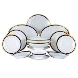 In white porcelain with cobalt blue and gold band, production mark, slight wears