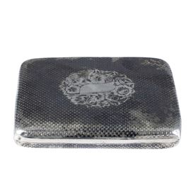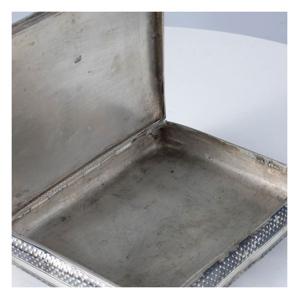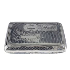 rectangular shape, incision with postal and floral motifs on the lid, slight defects, weight 123 gr
