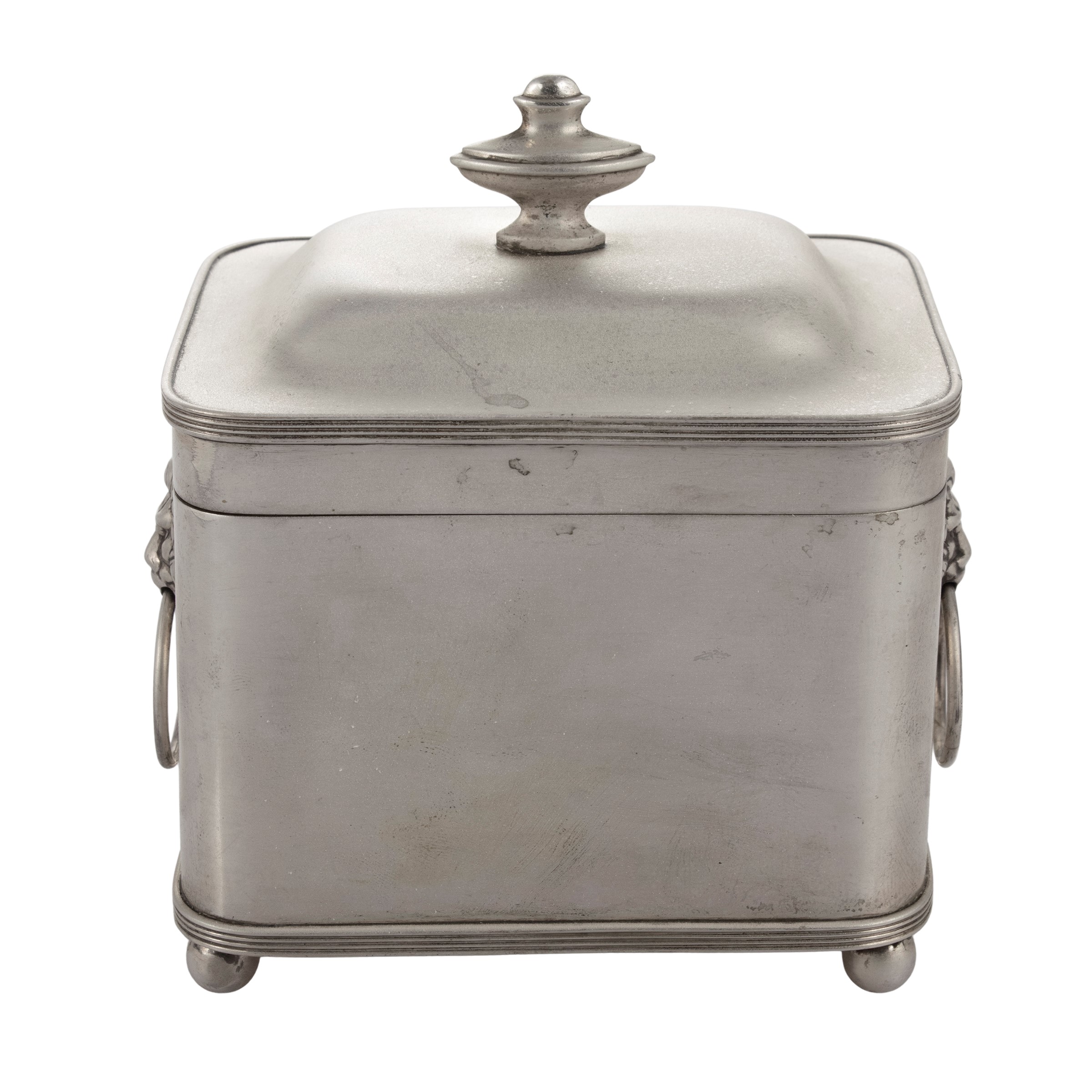 12x10.5x8 cm.with rectangular section resting on four sphere feet, two side rings held by Leonine heads, weight 353 gr